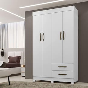 Roupeiro Copacabana Branco Sem Espelho Com 4 Portas Benetil Móveis Branco O Roupeiro Sem Espelho Copacabana 4 Portas Possui 03 Prateleiras, Cabideiro Em Aluminio, 02 Gavetas Com Corredicas Telescopicas E Puxadores Em Pvc. Proporcionando Beleza E Organizacao Para Seu Quarto. Caracteristicas: Cor: Branco Acabamento: Pintura Uv Possui Pe: 06 Possui Portas: 04 Possui Gavetas:02 Tipo Porta: Bater Necessita Montagem: Sim Complexidade Montagem: Media Indicacao De : Quarto