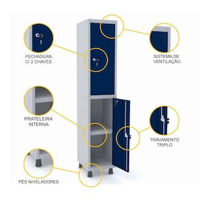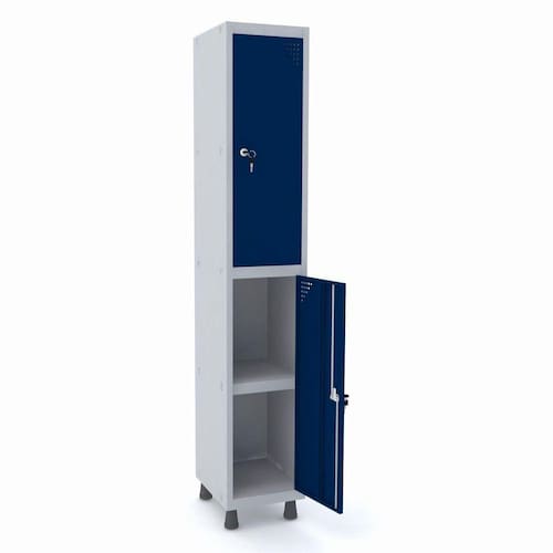 Oferecer o máximo de funcionalidade e pensar no conforto dos seus funcionários não custa muito. Basta investir nesta peça que une praticidade e design ao melhor custo-benefício. Este roupeiro de aço da Pandin nas cores cinza e azul conta com duas portas com fechaduras que possuem chaves individuais. Cada vão contém uma prateleira dividindo o espaço e assim proporcionando mais comodidade para que os colaboradores, clientes ou usuários de seu negócio armazenem seus pertences com tranquilidade. Versátil e modular, este roupeiro de aço pode ser colocado onde você precisar, como indústrias, recepções, lojas, academias, laboratórios, condomínios, clínicas e todo tipo de empresa que necessita seguir normas de segurança e higiene ou apenas precisa de um espaço de arrumação diária. Esta é uma peça com a qualidade garantida da Pandin, que oferece móveis resistentes, duráveis e seguros, ideais para quem precisa organizar o dia a dia com segurança e praticidade. Complemente o projeto de seu ambiente com os arquivos, armários e estantes de aço da marca.