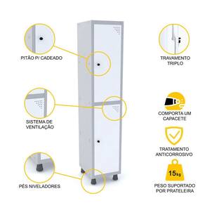 ROUPEIRO DE AÇO 1M 02 PORTAS PITÃO PANDIN - CINZA/BRANCO