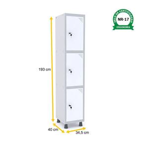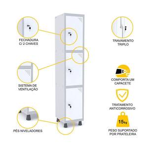 À procura de um móvel seguro para armazenar objetos dos colaboradores, clientes ou pacientes de seu estabelecimento? Este roupeiro de aço da Pandin nas cores cinza e branco tem três vãos com fechadura, cada um com espaço suficiente para que os usuários tenham toda a comodidade de que precisam no dia a dia. Para maior segurança, cada fechadura oferece travamento triplo e acompanha chaves individuais. Versátil e modular, este roupeiro de aço vem em várias opções de cores e tamanhos, sendo ideal para indústrias, recepções, lojas, academias, laboratórios, condomínios, clínicas e todo tipo de empresa que necessita seguir normas de segurança e higiene ou apenas precisa de um espaço de arrumação diária. Esta é uma peça com a qualidade garantida da Pandin, que oferece móveis resistentes, duráveis e seguros, ideais para quem precisa organizar o dia a dia com segurança e praticidade. A Pandin também oferece arquivos, armários e estantes de aço para que seu escritório e seu negócio contem com uma decoração prática, moderna e de excelente custo-benefício.