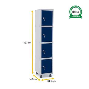 - Roupeiro de aço com 4 portas (4 vãos) em 1 fileira.