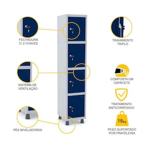 À procura de um móvel seguro para armazenar objetos dos colaboradores, clientes ou pacientes de seu estabelecimento? Este roupeiro de aço da Pandin nas cores cinza e azul tem quatro vãos com fechadura, cada um com espaço suficiente para que os usuários tenham toda a comodidade de que precisam no dia a dia. Para maior segurança, cada fechadura oferece travamento triplo e acompanha chaves individuais. Versátil e modular, este roupeiro de aço vem em várias opções de cores e tamanhos, sendo ideal para indústrias, recepções, lojas, academias, laboratórios, condomínios, clínicas e todo tipo de empresa que necessita seguir normas de segurança e higiene ou apenas precisa de um espaço de arrumação diária. Esta é uma peça com a qualidade garantida da Pandin, que oferece móveis resistentes, duráveis e seguros, ideais para quem precisa organizar o dia a dia com segurança e praticidade. A Pandin também oferece arquivos, armários e estantes de aço para que seu escritório e seu negócio contem com uma decoração prática, moderna e de excelente custo-benefício.