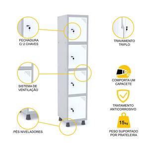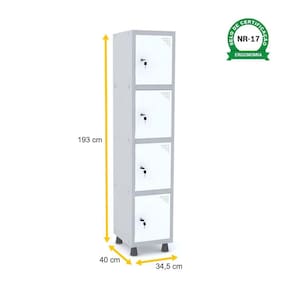 À procura de um móvel seguro para armazenar objetos dos colaboradores, clientes ou pacientes de seu estabelecimento? Este roupeiro de aço da Pandin nas cores cinza e branco tem quatro vãos com fechadura, cada um com espaço suficiente para que os usuários tenham toda a comodidade de que precisam no dia a dia. Para maior segurança, cada fechadura oferece travamento triplo e acompanha chaves individuais. Versátil e modular, este roupeiro de aço vem em várias opções de cores e tamanhos, sendo ideal para indústrias, recepções, lojas, academias, laboratórios, condomínios, clínicas e todo tipo de empresa que necessita seguir normas de segurança e higiene ou apenas precisa de um espaço de arrumação diária. Esta é uma peça com a qualidade garantida da Pandin, que oferece móveis resistentes, duráveis e seguros, ideais para quem precisa organizar o dia a dia com segurança e praticidade. A Pandin também oferece arquivos, armários e estantes de aço para que seu escritório e seu negócio contem com uma decoração prática, moderna e de excelente custo-benefício.