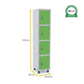 À procura de um móvel seguro para armazenar objetos dos colaboradores, clientes ou pacientes de seu estabelecimento? Este roupeiro de aço da Pandin nas cores cinza e verde tem quatro vãos com fechadura, cada um com espaço suficiente para que os usuários tenham toda a comodidade de que precisam no dia a dia. Para maior segurança, cada fechadura oferece travamento triplo e acompanha chaves individuais. Versátil e modular, este roupeiro de aço vem em várias opções de cores e tamanhos, sendo ideal para indústrias, recepções, lojas, academias, laboratórios, condomínios, clínicas e todo tipo de empresa que necessita seguir normas de segurança e higiene ou apenas precisa de um espaço de arrumação diária. Esta é uma peça com a qualidade garantida da Pandin, que oferece móveis resistentes, duráveis e seguros, ideais para quem precisa organizar o dia a dia com segurança e praticidade. A Pandin também oferece arquivos, armários e estantes de aço para que seu escritório e seu negócio contem com uma decoração prática, moderna e de excelente custo-benefício.