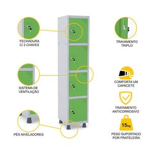 Roupeiro De Aço 1M 04 Portas Fechadura Pandin - Cinza/Verde - Verde Limão