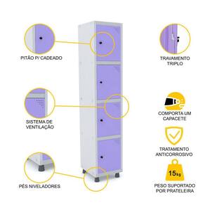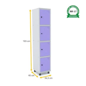 ROUPEIRO DE AÇO 1M 04 PORTAS PITÃO PANDIN - CINZA/LILÁS