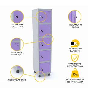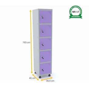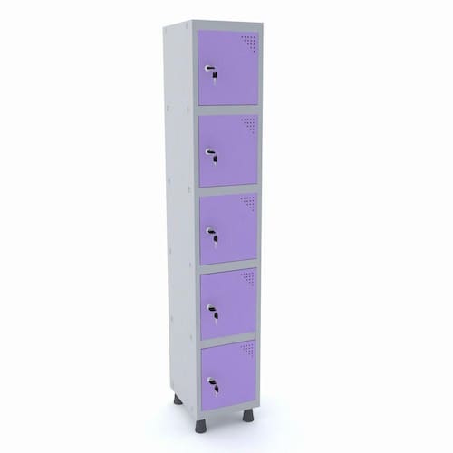 À procura de um móvel seguro para armazenar objetos dos colaboradores, clientes ou pacientes de seu estabelecimento? Este roupeiro de aço da Pandin nas cores cinza e lilás tem cinco vãos com fechadura, cada um com espaço suficiente para que os usuários tenham toda a comodidade de que precisam no dia a dia. Para maior segurança, cada fechadura oferece travamento triplo e acompanha chaves individuais. Versátil e modular, este roupeiro de aço vem em várias opções de cores e tamanhos, sendo ideal para indústrias, recepções, lojas, academias, laboratórios, condomínios, clínicas e todo tipo de empresa que necessita seguir normas de segurança e higiene ou apenas precisa de um espaço de arrumação diária. Esta é uma peça com a qualidade garantida da Pandin, que oferece móveis resistentes, duráveis e seguros, ideais para quem precisa organizar o dia a dia com segurança e praticidade. A Pandin também oferece arquivos, armários e estantes de aço para que seu escritório e seu negócio contem com uma decoração prática, moderna e de excelente custo-benefício.