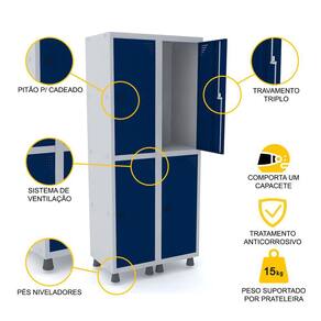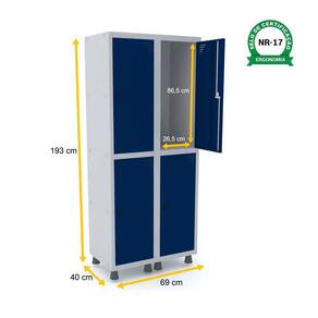 ROUPEIRO DE AÇO 2M 04 PORTAS PITÃO PANDIN - CINZA/AZUL DEL REY