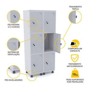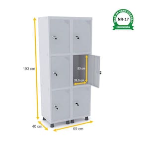 ROUPEIRO DE AÇO 2M 06 PORTAS FECHADURA PANDIN - CINZA