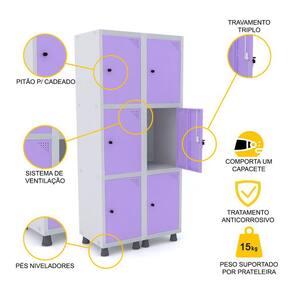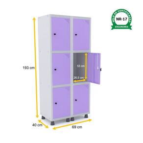 ROUPEIRO DE AÇO 2M 06 PORTAS PITÃO PANDIN - CINZA/LILÁS