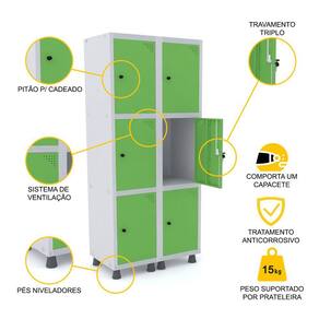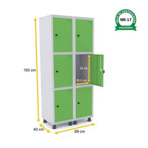 ROUPEIRO DE AÇO 2M 06 PORTAS PITÃO PANDIN - CINZA/VERDE