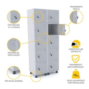 ROUPEIRO DE AÇO 2M 10 PORTAS FECHADURA PANDIN - CINZA