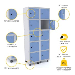 ROUPEIRO DE AÇO 2M 10 PORTAS PITÃO PANDIN - CINZA/AZUL DALÍ