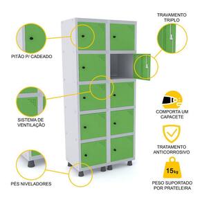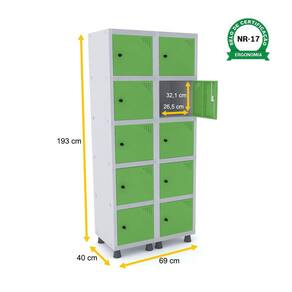 ROUPEIRO DE AÇO 2M 10 PORTAS PITÃO PANDIN - CINZA/VERDE