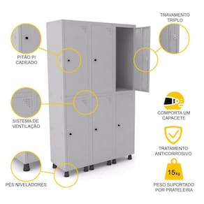 ROUPEIRO DE AÇO 3M 06 PORTAS PITÃO PANDIN - CINZA