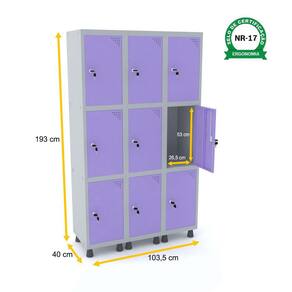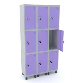 ROUPEIRO DE AÇO 3M 09 PORTAS FECHADURA PANDIN - CINZA/LILÁS