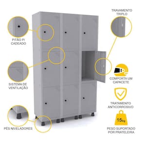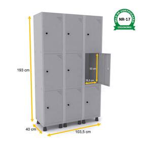 ROUPEIRO DE AÇO 3M 09 PORTAS PITÃO PANDIN - CINZA