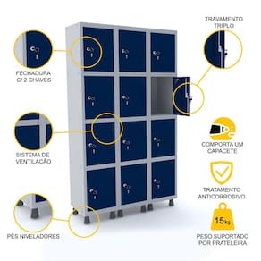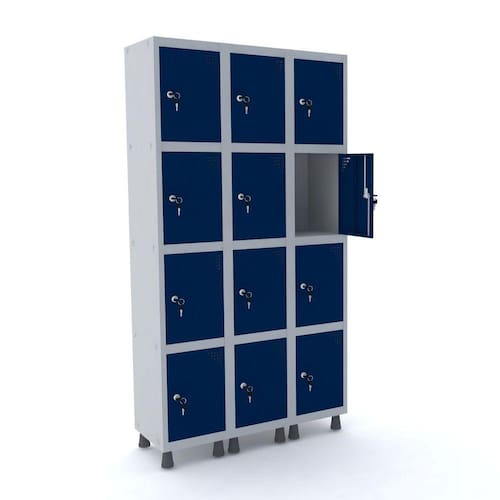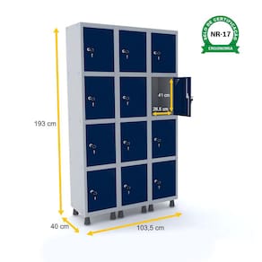 ROUPEIRO DE AÇO 3M 12 PORTAS FECHADURA PANDIN - CINZA/AZUL DEL REY