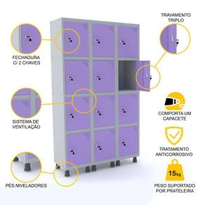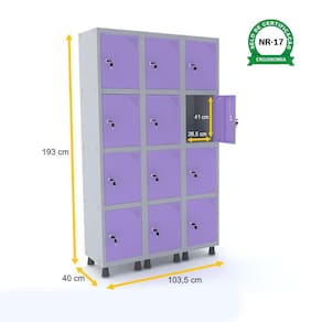 ROUPEIRO DE AÇO 3M 12 PORTAS FECHADURA PANDIN - CINZA/LILÁS