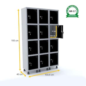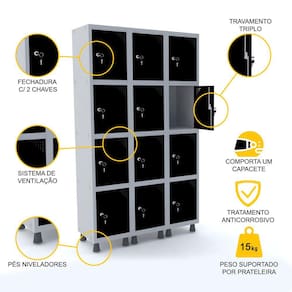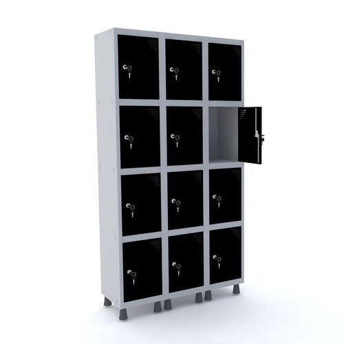 ROUPEIRO DE AÇO 3M 12 PORTAS FECHADURA PANDIN - CINZA/PRETO