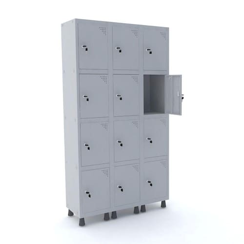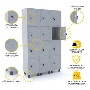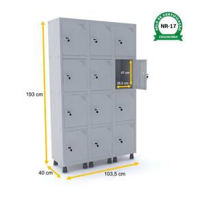 ROUPEIRO DE AÇO 3M 12 PORTAS FECHADURA PANDIN - CINZA