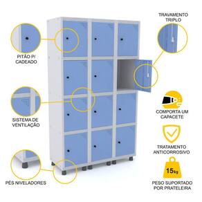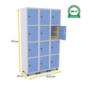 ROUPEIRO DE AÇO 3M 12 PORTAS PITÃO PANDIN - CINZA/AZUL DALÍ