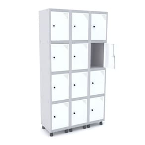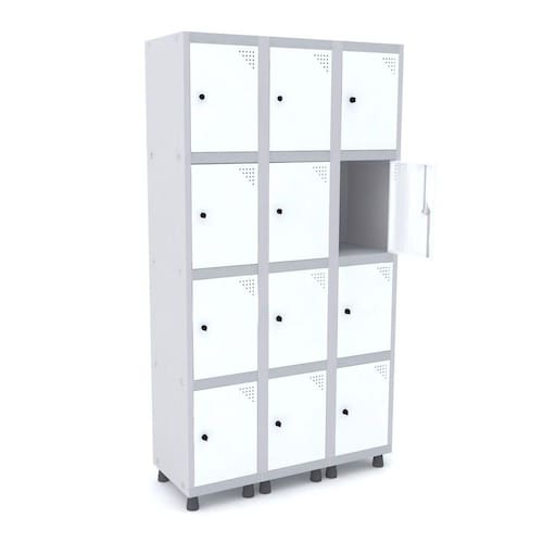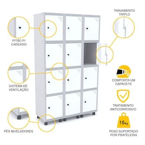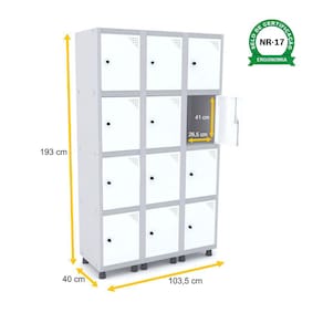 ROUPEIRO DE AÇO 3M 12 PORTAS PITÃO PANDIN - CINZA/BRANCO