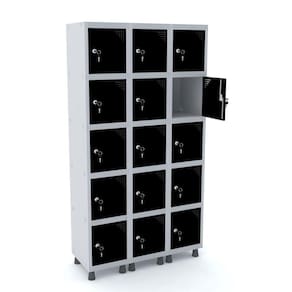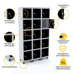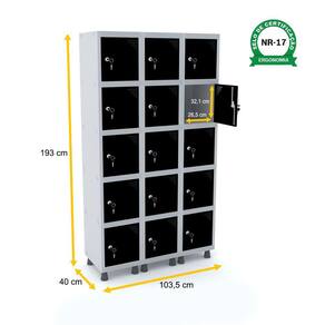 ROUPEIRO DE AÇO 3M 15 PORTAS FECHADURA PANDIN - CINZA/PRETO