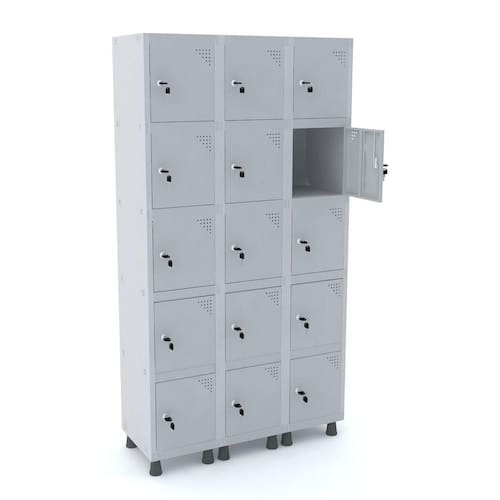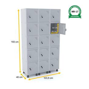 ROUPEIRO DE AÇO 3M 15 PORTAS FECHADURA PANDIN - CINZA