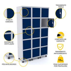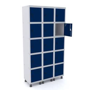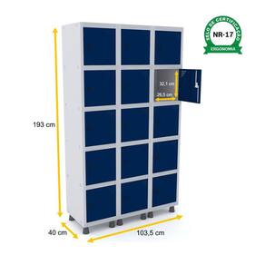 ROUPEIRO DE AÇO 3M 15 PORTAS PITÃO PANDIN - CINZA/AZUL DEL REY