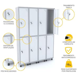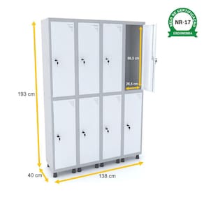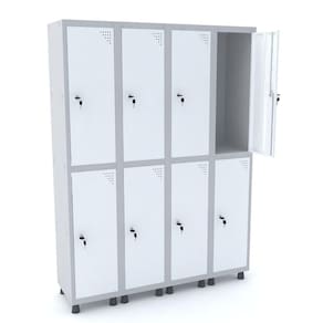 ROUPEIRO DE AÇO 4M 08 PORTAS FECHADURA PANDIN - CINZA/BRANCO