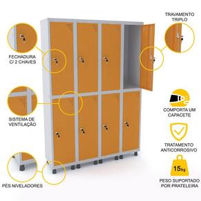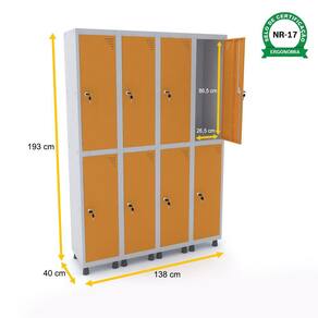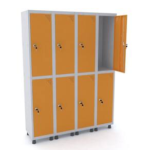 ROUPEIRO DE AÇO 4M 08 PORTAS FECHADURA PANDIN - CINZA/LARANJA