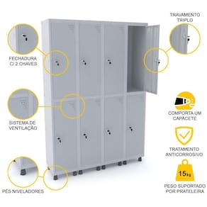 ROUPEIRO DE AÇO 4M 08 PORTAS FECHADURA PANDIN - CINZA