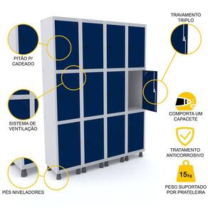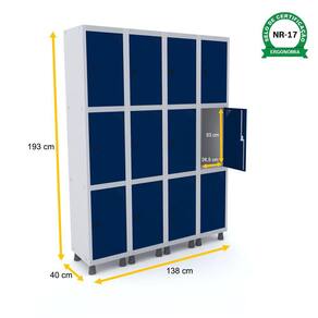 ROUPEIRO DE AÇO 4M 12 PORTAS PITÃO PANDIN - CINZA/AZUL DEL REY