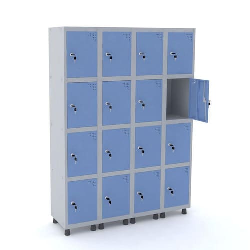 ROUPEIRO DE AÇO 4M 16 PORTAS FECHADURA PANDIN - CINZA/AZUL DALÍ
