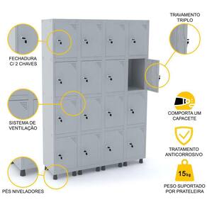 ROUPEIRO DE AÇO 4M 16 PORTAS FECHADURA PANDIN - CINZA