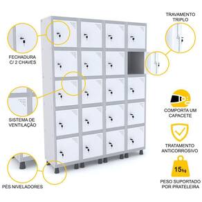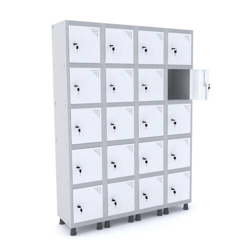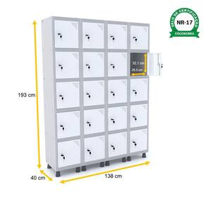 ROUPEIRO DE AÇO 4M 20 PORTAS FECHADURA PANDIN - CINZA/BRANCO