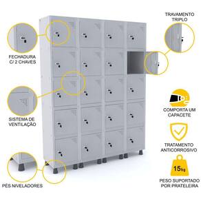 ROUPEIRO DE AÇO 4M 20 PORTAS FECHADURA PANDIN - CINZA