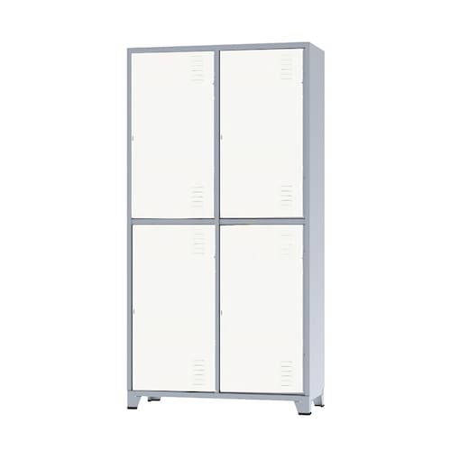 CONEXÃO OFFICEArmário Roupeiro de aço para vestiário,ideal para academias, surpermercados, empresa e para uso geral. Produzido em aço chapa 26 0,45mm de alta qualidade com tratamento anti-ferruginoso, o acabamento em sistema de pintura eletrostática a alta temperatura epóxi, tambem garante maior durabilidade da cor e resistencia a ferrugem. Possui 4 portas com venezianas para ventilação, compartimentos de tamanhos médios independentes sem divisórias internas, que garante que você consiga armazenar itens como bolsas, mochilas e entre outros. O fechamento das portas é através de CHAVECaracterísticas- Quantidade de Portas: 4- Cor: Cinza Padrão- Chapa: 26 / 0,45mm- Medida das Portas/ Vãos: 092Alt x 047Larg- Sistema de Ventilação: Veneziana- Fechamento: Chave- Quantidade de cabides por porta: 2- Pés removíveis: Não- Desmontável: Não ( Exceto portas que podem ser trocadas ).- Pintura: Epóxi PóALTURA: 197cmLARGURA: 100 cmPROFUNDIDADE: 042cmPESO: 40kgGARANTIA: 1 Meses
