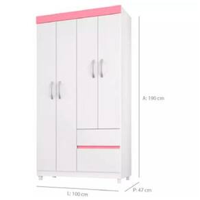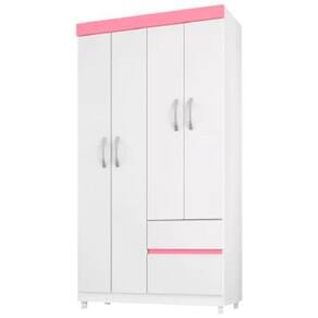 Roupeiro demobile lotus 04 pts e 02 gvt - 42060 ............ Cor: branco/rosa - voltagem: sem voltagem