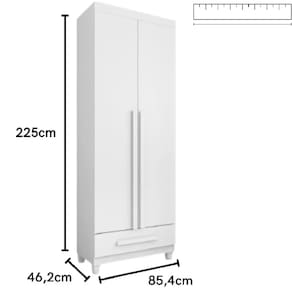 O Roupeiro Dubai 2 Portas Branco - RV Móveis veio para agregar valor e elegância em seu espaço, desenvolvido para acomodar de maneira fácil, eficaz e organizado suas roupas e objetos desejados. Fácil de ser acomodado em lugares pequenos e compactos proporcionando um espaço surreal e muito bem distribuído. Conta com 2 portas e 4 prateleiras para melhor atender a diversidade do dia a dia. O que torna o roupeiro exclusivo é que pode ser feito a montagem interna de duas maneiras diferentes, uma com cabideiro, outra com prateleiras divisórias, podendo adaptar em diferentes necessidades.Dimensões do Produto Montado:-Altura: 225cm-Largura: 85cm-Profundidade: 46cmObservações:-Dupla Opção de Montagem (Parte Inteira) Cabideiro ou Duas Prateleiras Móvel-Portas com Dobradiças Metálicas-Gaveta com Corrediças Metálicas-Puxadores em MDF-5 PrateleirasMarca: RV MÓVEISModelo: DubaiReferência: CP805BRWATENÇÃO: Não nos responsabilizamos pela montagem deste produto. Aconselhamos a contratação de um profissional.
