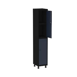 Roupeiro em Aço Mt 1v 2 Portas com Prateleira Interna Pitâo Preto/Azul Delrei