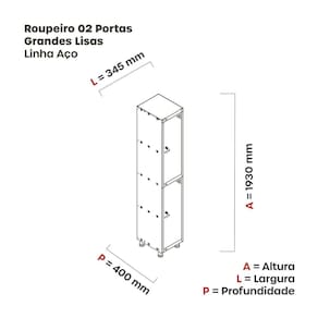 Armário Roupeiro de Aço totalmente montável, dispensa a utilização de parafusos, estrutura em chapas #24 e #26 (0,60mm e 0,45mm) conta com uma porta com estampos circulares em formação triangular para ventilação, sistema de fechamento de varão de 3 pontos, através de pitão para cadeado.