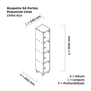Armário Roupeiro de Aço totalmente montável, dispensa a utilização de parafusos, estrutura em chapas #24 e #26 (0,60mm e 0,45mm) conta com uma porta com estampos circulares em formação triangular para ventilação, sistema de fechamento de varão de 3 pontos, através de pitão para cadeado. Em conformidade com as normas NR17.