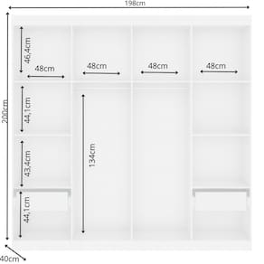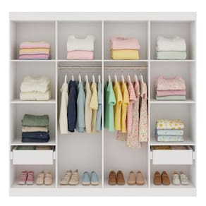 Amplo espaço interno: prateleiras, cabideiros e gavetas que organizam perfeitamente roupas, calçados e acessórios.