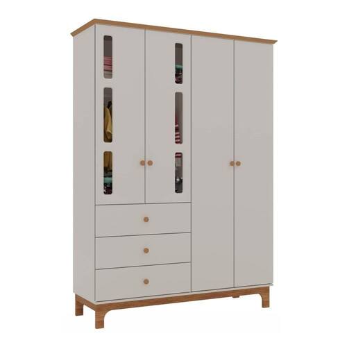 Roupeiro Infantil Antonella 4 Portas 3 Gavetas Off White/Caramelo - Móveis Canaã