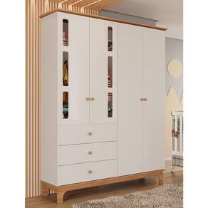 Com um design moderno e neutro, o Roupeiro possui 4 Portas e 3 gavetas, com um excelente espaço para guardar as roupinhas do seu filho(a).