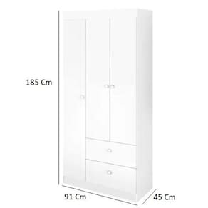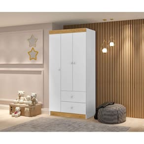 Roupeiro Infantil Guarda Roupa 3 Portas 2 Gavetas E Nichos