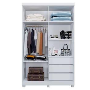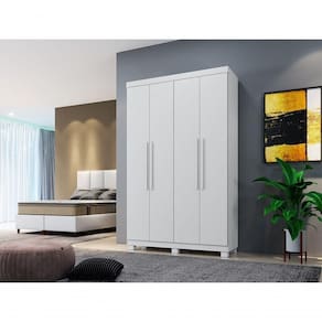 Roupeiro Milão 4 Portas 3 Gavetas Benetil Branco O Roupeiro Milão da Benetil é prático e funcional. Possui boa profundidade, possibilitando armazenar travesseiros, cobertores e demais objetos de forma mais organizada. Conta com três gavetas internas em corrediças telescópicas, o que garante uma maior abertura. As portas de bater dão a ele um ar tradicional, mas com elementos que valorizam cada detalhe. O cabideiro é em alumínio o que dá mais segurança e resistência. Ele é compacto. Excelentes para quartos menores. Informações técnicas: Linha: Roupeiro Milão Marca: Benetil Móveis Estilo: Moderno Origem do produto: Nacional Matéria-prima da estrutura: mdp Ambiente principal: Quarto Acabamento: uv Tipo de pintura: Fosco Necessita montagem: Sim Possui pés: Sim Quantidade de pés: 6 Altura dos pés: 5cm Material dos pés: pvc Possui portas: Sim Quantidade de portas: 4 Tipo de portas: Bater Tipo de puxador da porta: Externo Matéria-prima dos puxadores: mdf Madeirado Possui prateleiras: Sim, 5. Possui gavetas: Sim Quantidade de gavetas: 3 Tipo de gaveta: Interna Tipo de corrediça da gaveta: Telescópica Possui cabideiro: Sim Quantidade de cabideiro: 1 Matéria-prima do cabideiro: Alumínio