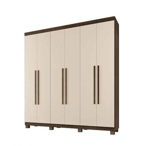 Roupeiro Milão 6 Portas 3 Gavetas Benetil Imbuia/off White O Roupeiro Milão da Benetil é prático e funcional. Possui boa profundidade, possibilitando armazenar travesseiros, cobertores e demais objetos de forma mais organizada. Conta com três gavetas internas em corrediças telescópicas, o que garante uma maior abertura. As portas de bater dão a ele um ar tradicional, mas com elementos que valorizam cada detalhe. O cabideiro é em alumínio o que dá mais segurança e resistência. Ele é compacto. Excelentes para quartos menores. Informações técnicas: Linha: Roupeiro Master Marca: Benetil Móveis Estilo: Moderno Origem do produto: Nacional Matéria-prima da estrutura: MDP Ambiente principal: Quarto Acabamento: UV Tipo de pintura: Fosco De canto: Não Necessita montagem: Sim Possui espelho interno: Não Possui espelho externo: Não Possui pés: Sim Quantidade de pés: 6 Altura dos pés: 5cm Material dos pés: PVC Possui portas: Sim Quantidade de portas: 6 Tipo de portas: Bater Tipo de puxador da porta: Externo Matéria-prima dos puxadores: MDF Madeirado Possui prateleiras: Sim, 5. Possui gavetas: Sim Quantidade de gavetas: 3 Tipo de gaveta: Interna Tipo de corrediça da gaveta: Telescópica Possui cabideiro: Sim Quantidade de cabideiro: 1 Matéria-prima do cabideiro: Alumínio Recomendações de uso/manutenção: Limpar com flanela limpa e seca. Não usar produtos abrasivos. Dimensões: Altura: 215 cm Largura: 200 cm Profundidade: 47 cm Peso: 131kg Garantia do fornecedor: 3 meses Recomendações de uso/manutenção: Limpar com flanela limpa e seca. Não usar produtos abrasivos.
